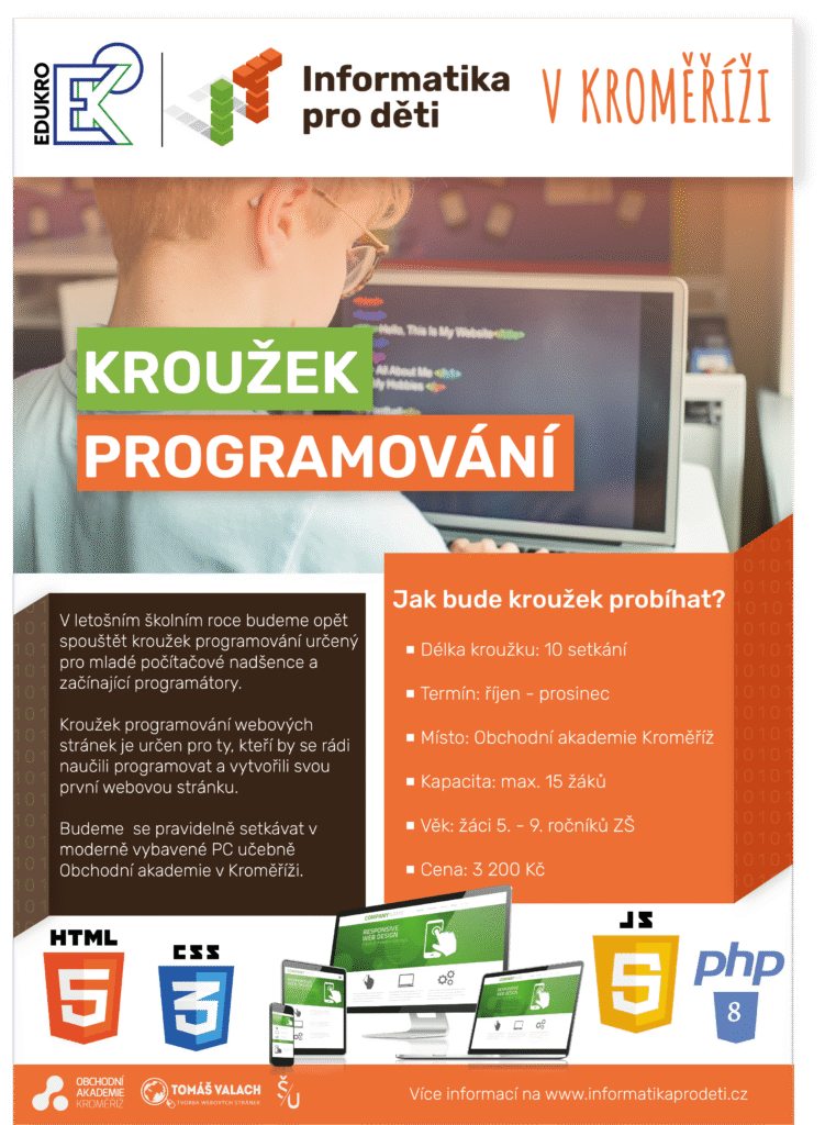 Zábava, kreativita a technologie v jednom balení – to je KROUŽEK PROGRAMOVÁNÍ WEBOVÝCH STRÁNEK, který se opět otevírá na Obchodní akademii v Kroměříži💻🎮